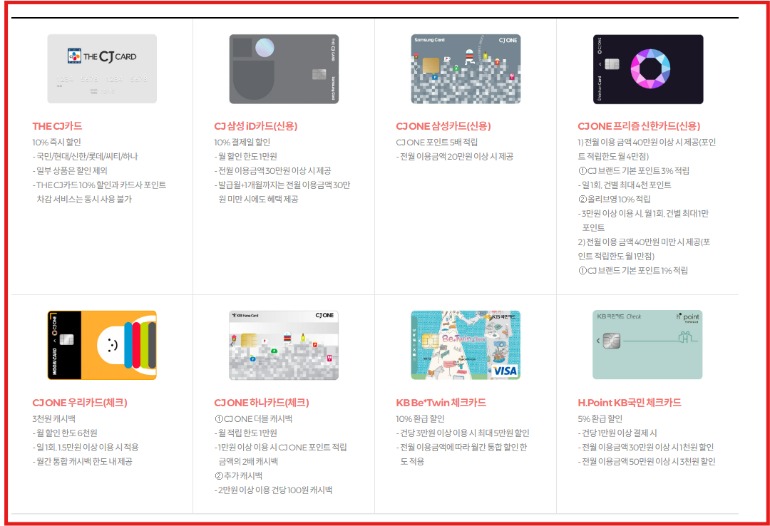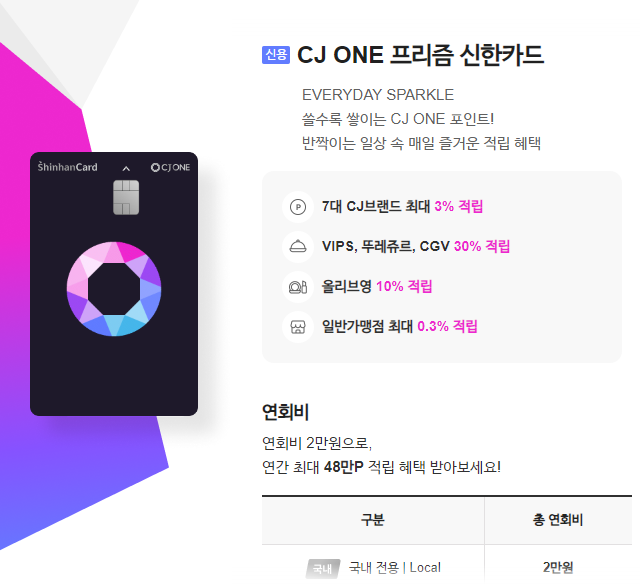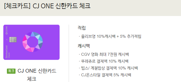 1.cj one프리즘 신한카드