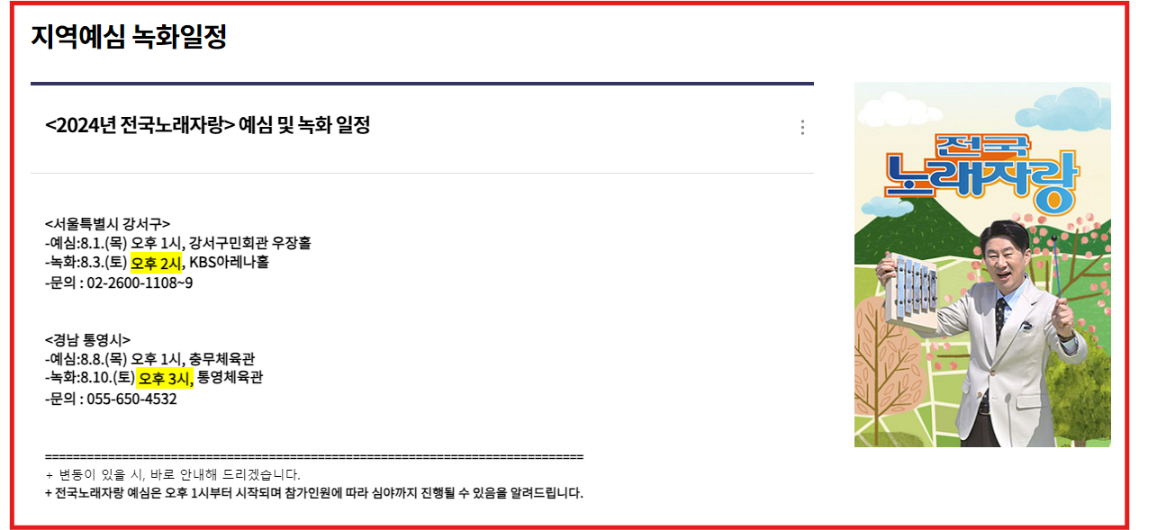 - 전국노래자랑 사무국: 전화번호 02-789-1234