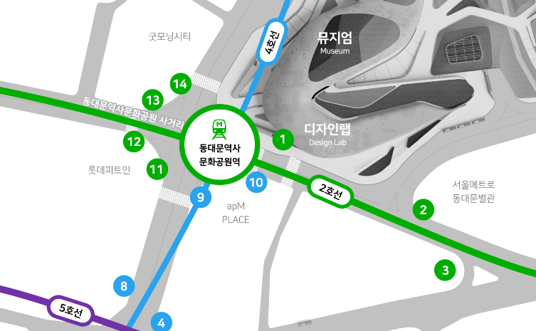 동대문디자인플라자는 서울 지하철 2호선, 4호선, 5호선 동대문역사문화공원역 1번 출구와 연결되어 있습니다. 대중교통을 이용하면 편리하게 방문할 수 있습니다.