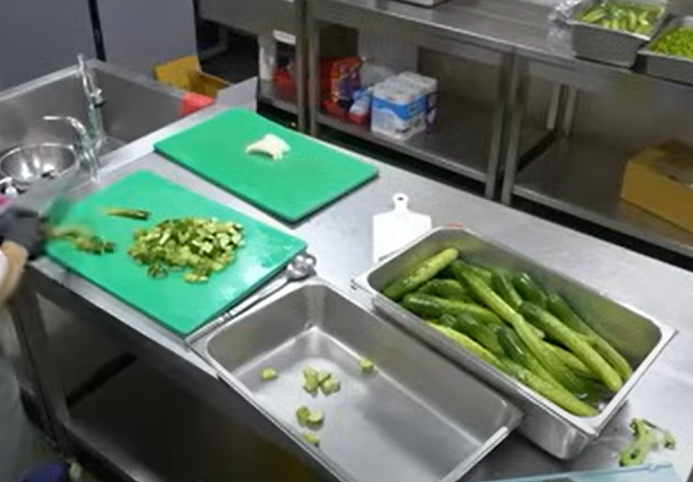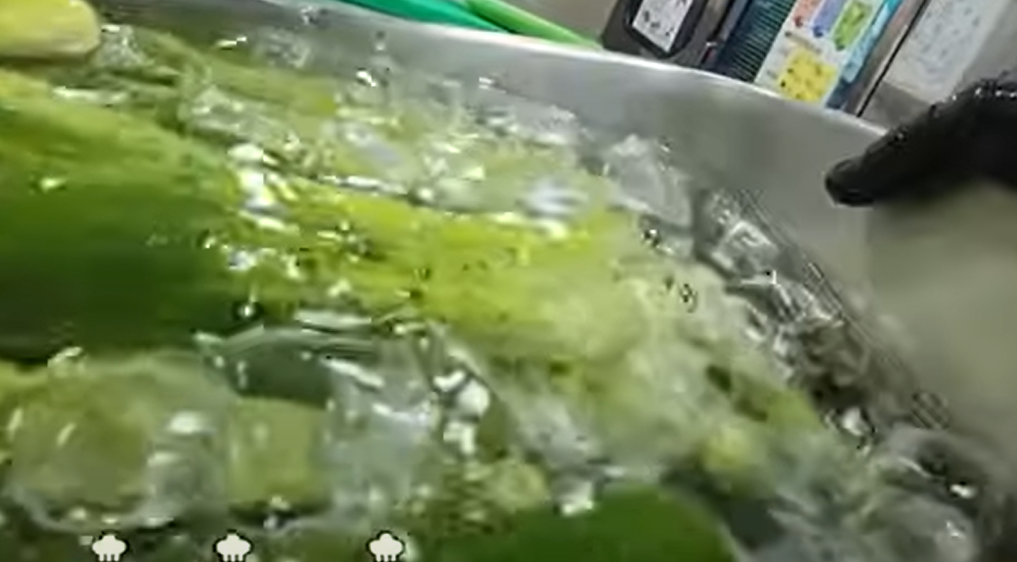 1.오이 손질: 오이를 깨끗이 씻어 얼음물에 담가 둡니다. (오이의 쓴맛이 줄어듦)