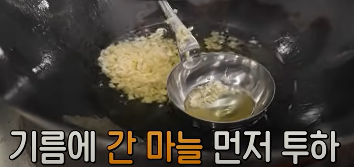 6.소스 준비: 팬에 식용유를 두르고 중 약불에 간 마늘을 먼저 넣어 향이 나도록 볶아줍니다.