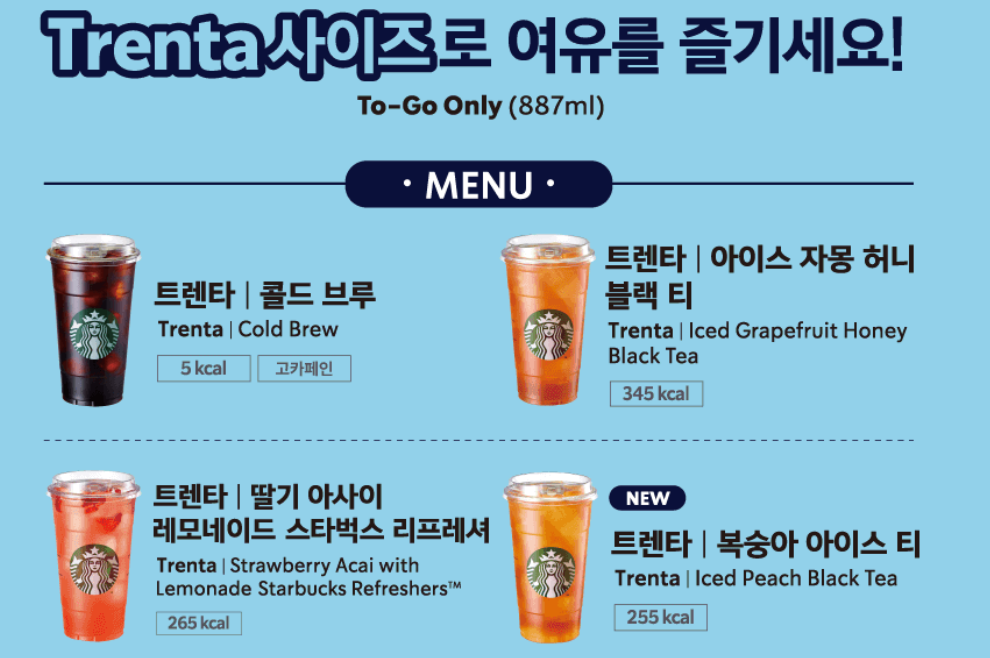트렌타 할인 쿠폰은 다음 4종의 음료에 적용됩니다: