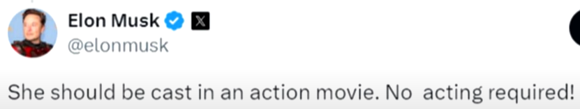 일론 머스크는 김예지선수의 사격장면을 보고 액션영화에 캐스팅해야 되어야한다, 연기할필요가 없다라고 극찬을했습니다.