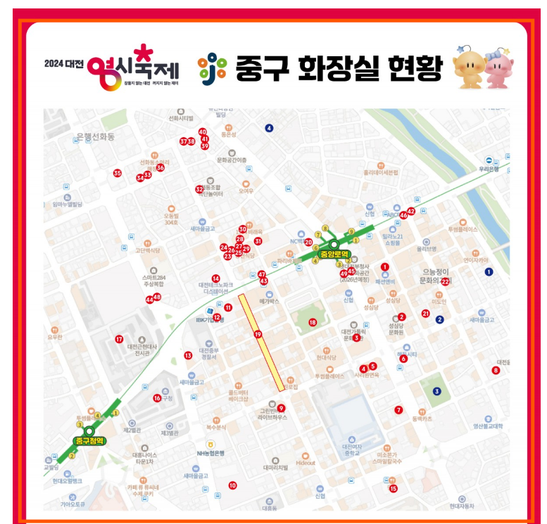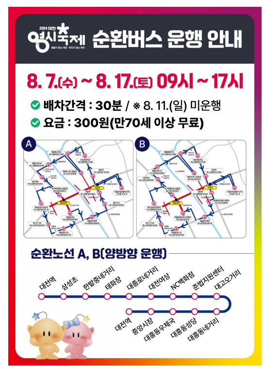 대전 0시 축제 8월7일부터 8월17일 토요일 까지 진행되는 영시축제입니다. 순환버스와 화장실 안내해드립니다.
