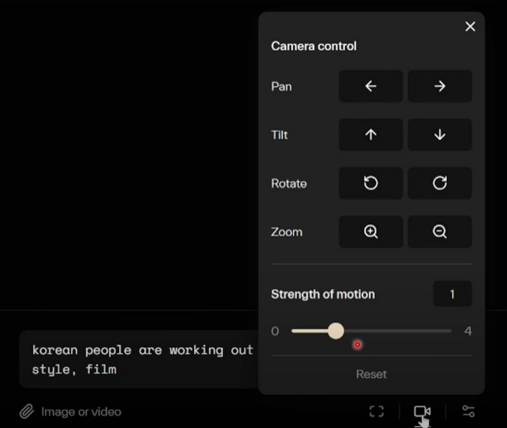 3.Strength of Motion: 카메라 이동의 강도를 설정해 장면 전환을 다이나믹하게 연출할 수 있습니다.