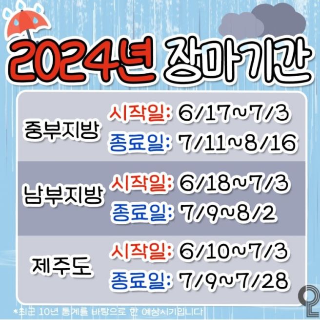이번2024년 우리나라 장마는 평년보다 늦어질 가능성이 큽니다.