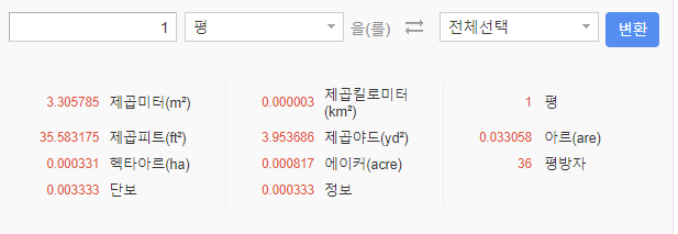 제곱미터와 평의 간편한 변환