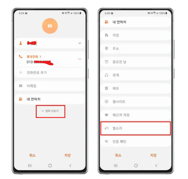 1. 개인이름에 벨소리지정하기 순서